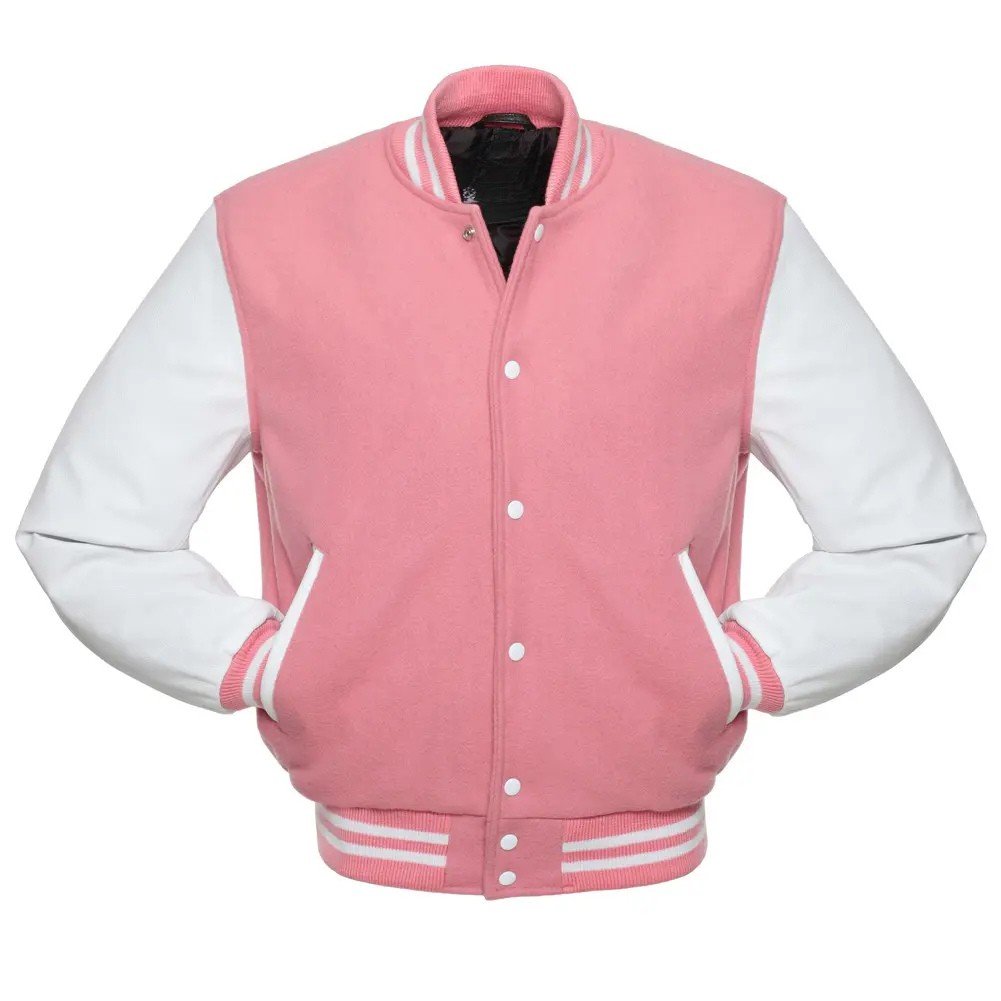 Inspired by traditional letterman jackets, this design captures the essence of school pride, individuality, and timeless charm. Once a symbol of athletic achievement, the varsity jacket has evolved into a global fashion icon. The Pink Wool/White Leather Varsity Jacket by Jacket Shoppe brings that legacy to life perfect for athletes, students, and fashion lovers who value premium quality and authentic craftsmanship.