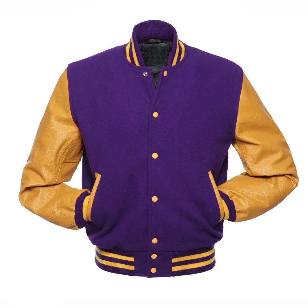 Once a proud symbol of school and athletic achievement, the varsity jacket has evolved into a fashion essential recognized around the world. The Purple Wool/Gold Leather Varsity Jacket carries that heritage forward perfect for athletes, students, and fashion enthusiasts who appreciate authentic materials and exceptional design.