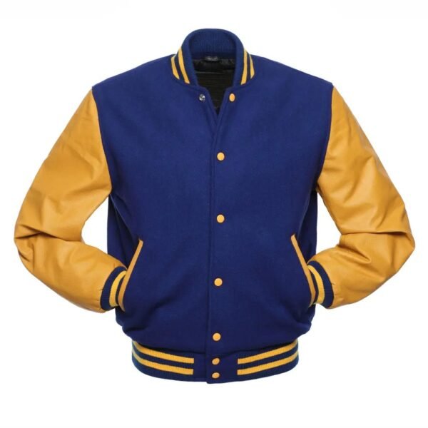 Each Royal Wool/Gold Leather Varsity Jacket is meticulously tailored to perfection, ensuring durability, warmth, and comfort in every stitch. Its bold royal-and-gold color combination makes it ideal for athletes, musicians, or anyone looking to make a powerful style statement.
